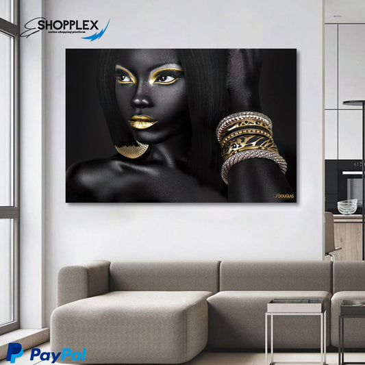 Black and Gold African Lady Single Piece Art 88
