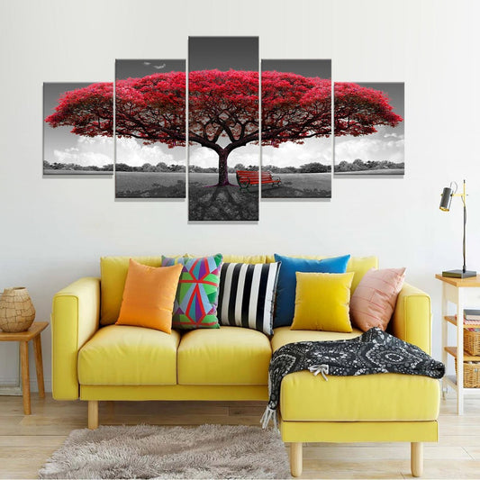 Red Big Tree with Bench 5 Piece Canvas Art 148