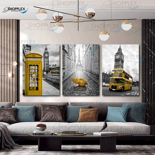 Regular price From $59.99 AUDRegular priceUnit price / per$79.99 AUDSale price From $59.99 AUD3 Piece Black and white Eifel tower Yellow Telephone Booth and Umbrella Art 55