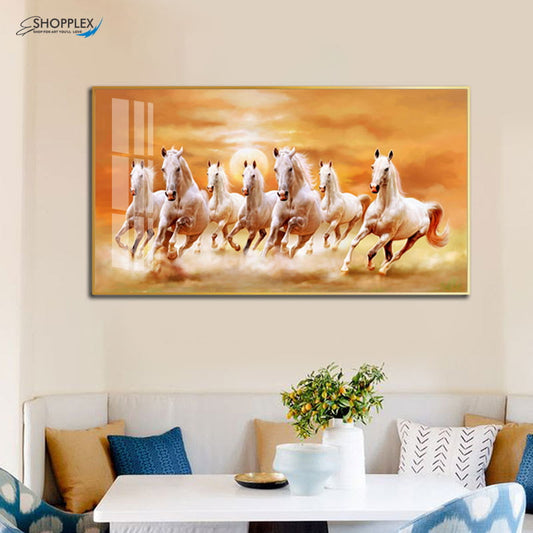 7 White Running Horses Design Single Piece Art P110