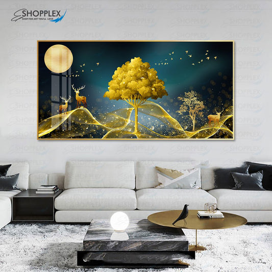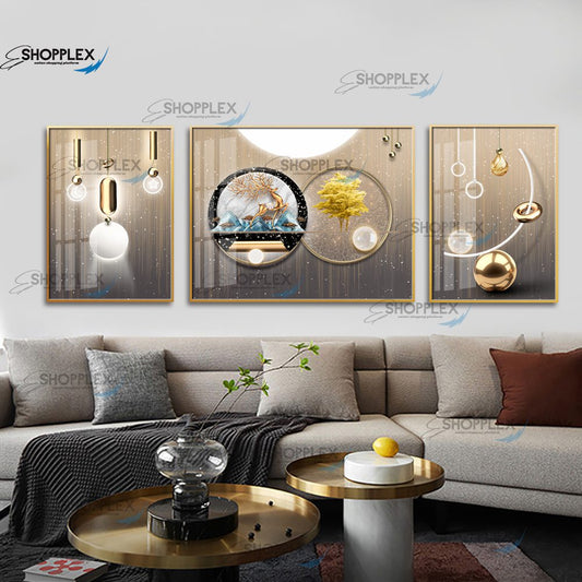 Modern abstract Art Golden Deer 3 Piece with 5D Diamond art D132