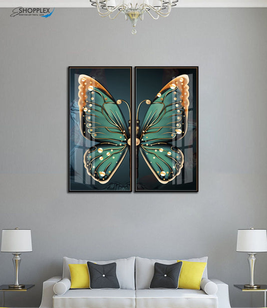 Butterfly Design Set of 2 in 5D diamonds Crystal Piece Art D90